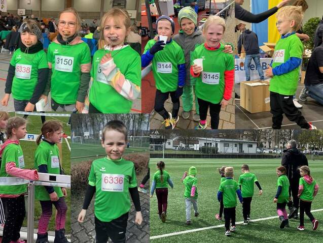Im Dezember letzten Jahres waren wir hier schon einmal zu Gast und wollten auch in diesem Jahr wieder mit dabei sein. Bei zahlreichen Anmeldungen für beide Kinderläufe (111 TN / 89 TN) mussten sich unsere jungen Leichtis, die zum Teil das erste Mal an einem Lauf teilnahmen, erst einmal im jeweiligen großen Starterfeld zurechtfinden. Im Startbereich ging es auf den ersten Metern eng zu, bevor die Läufer*innen den ersten steilen Hügel hinauflaufen mussten. Weiter über Wiesen- und Feldwege, immer ein bisschen bergauf/-ab. Der Zieleinlauf führte dann am Publikum vorbei ins Stadion. Angefeuert von den Eltern und Zuschauern flitzten unsere Leichtis im Endspurt mit prima Ergebnissen ins Ziel: